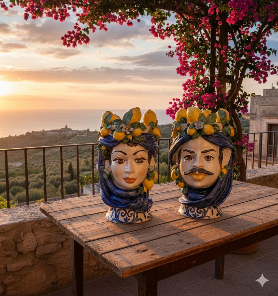 Teste di moro con limoni, realizzate unicamente a mano.